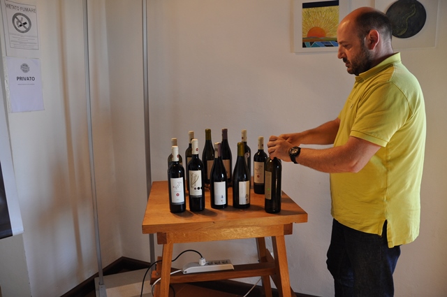 Unser Besuch schliessen wir mit einem Mittagessen auf dem Weingut ab. Unsere kleine Gruppe wird von Andrea und Luca Margaritelli, die Söhne von Giuseppe Margaritelli, ergänzt – eine grosse Ehre! Hauptberuflich sind beide verantwortlich für das Unternehmen Listone Giardino, weltweit bekannt für Top-Parkettprodukte. Allerdings erfahren wir gerade eben von Andrea, was es mit den Etiketten an sich hat. Die Symbole auf der Etiketten sind ganz eng mit der Region und deren Geschichte verbunden. In der Umgebung von Perugia wurde eine der wichtigsten Schlachten der Geschichte Italiens ausgetragen. Die Etiketten sollen die Verbundenheit zur Region ausdrücken. Der Ehrgeiz für Qualität und Nachhaltigkeit der Familie Margaritelli hinterlässt überall Spuren, auch im Weingut.